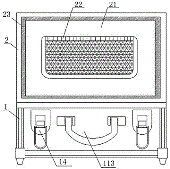 本實用新型公開了一種便于攜帶的防雷檢測裝置,包括防雷檢測箱體,所述防雷檢測箱體中固定安裝有用于雷電檢測的設備,所述防雷檢測箱體的上方設置有箱蓋,所述箱蓋和防雷檢測箱體之間通過鉸鏈活動連接,且箱蓋和防雷檢測箱體的連接處安裝有對應的箱蓋鎖體,所述防雷檢測箱體的前壁上安裝有收納外包,本實用新型通過滑輪、套管、伸縮桿、限位螺帽和拉桿的安裝,可以根據不同身高人群,來調節伸縮桿和套管之間的總長度,對此防雷檢測箱體進行移動的拖拉工作,具有很好的便攜性,整體便于移動和使用,并且通過收納外包和工具儲藏抽屜的安裝,增加了此防雷檢測箱體的收納空間,有利于防雷檢測工作的快速進行,便于使用。